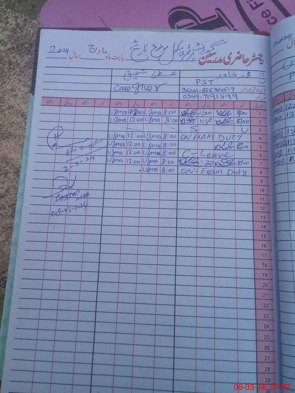 | Name: MA**** Designation: (School Headmaster's/Headmistress's) PST Phone/Cell Number: 03**** |