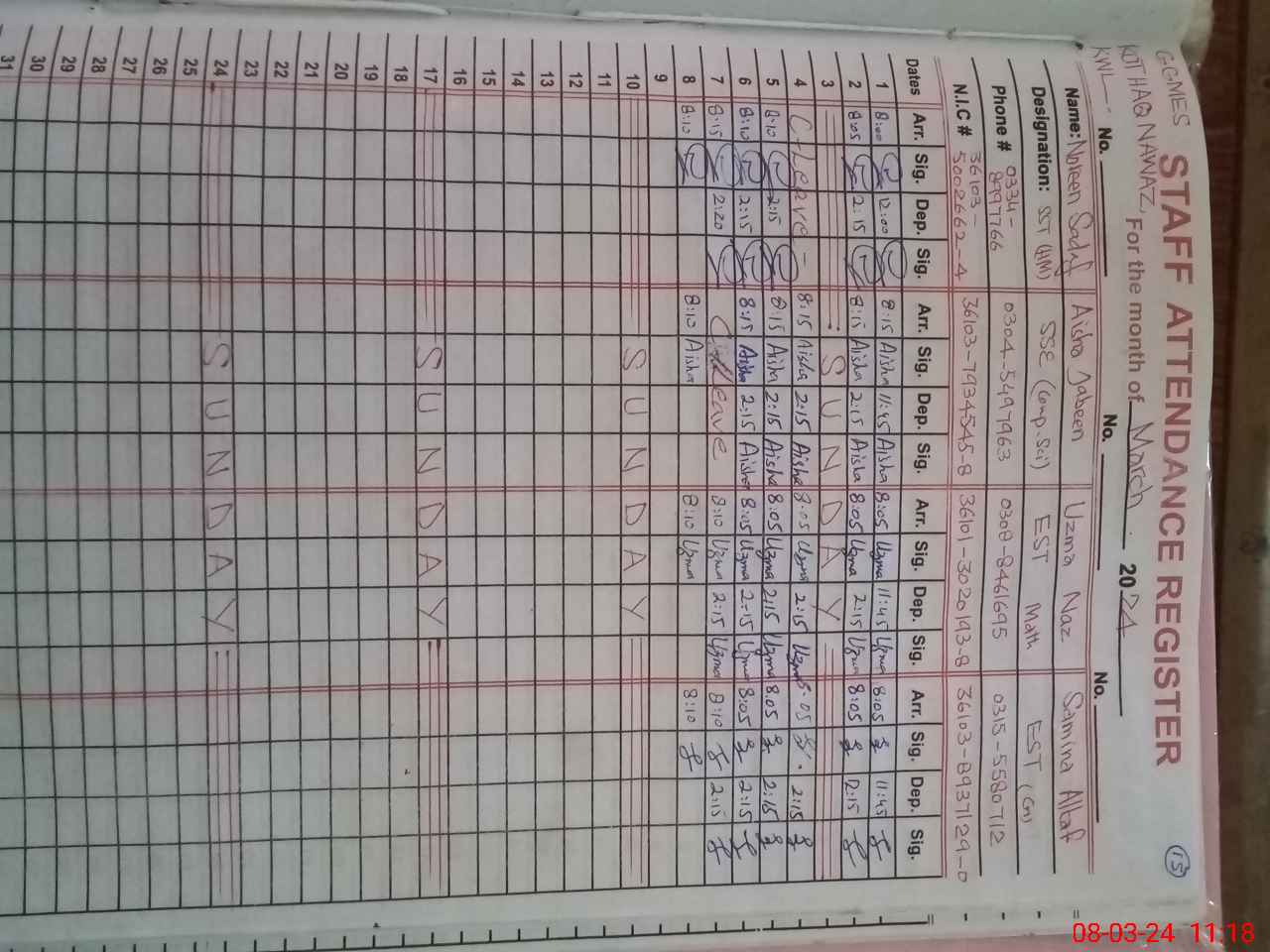 | Name: NO**** SA**** Designation: (School Headmaster's/Headmistress's) SST(G) Phone/Cell Number: 03**** |