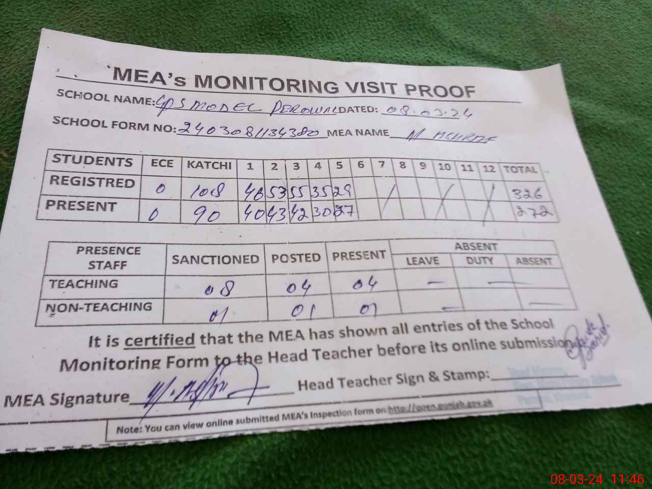 | EMIS Code: 36420412 | Name of School: GPS MODEL PEROWAL, KHANEWAL | |||