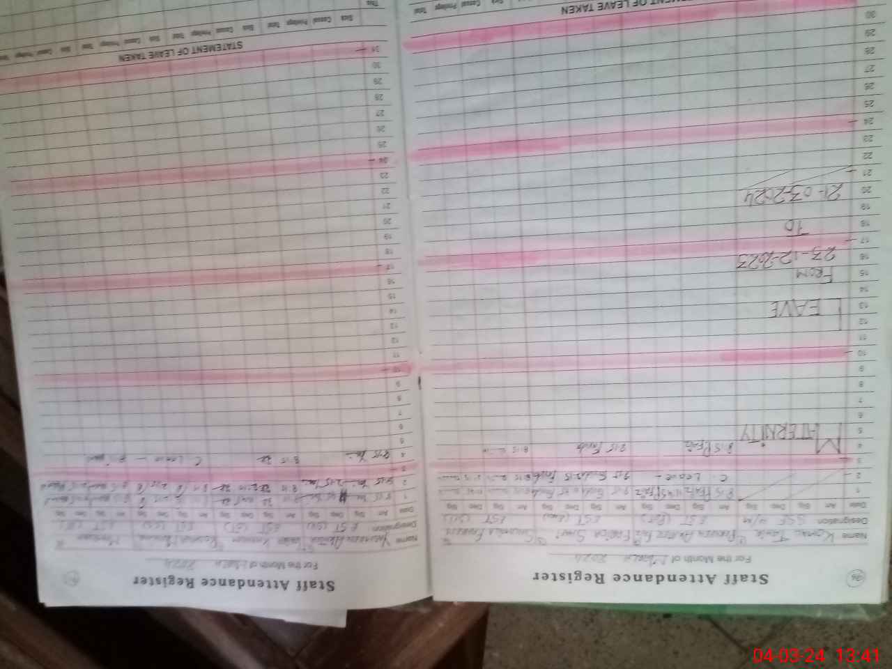 | Leave | Duty | Absent | Maternity | Medical | Ex- Pak |