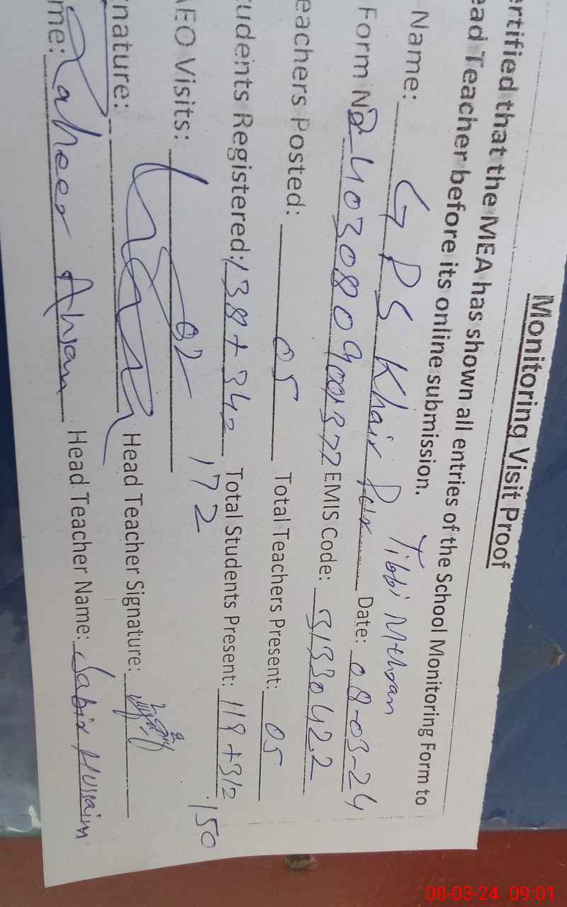 | EMIS Code: 31330422 | Name of School: GPS TIBBI MAHARAN | |||