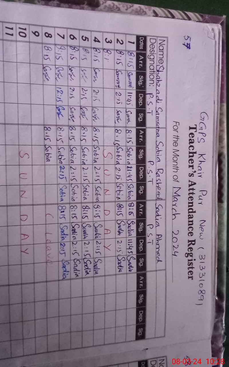 | Name: Sh**** Sa**** Designation: (School Headmaster's/Headmistress's) PST Phone/Cell Number: 03**** |