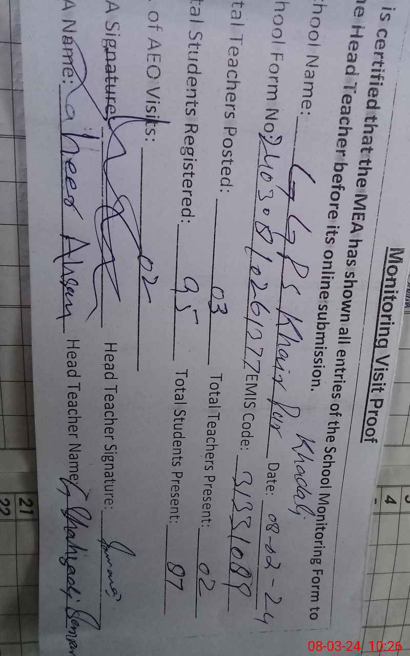 | EMIS Code: 31331089 | Name of School: GGPS KHAIR PUR KHADALI | |||