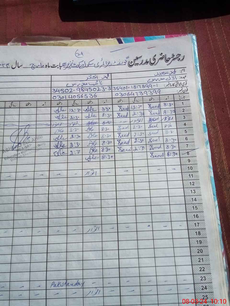 | Name: MU**** AK**** Designation: (School Headmaster's/Headmistress's) PST Phone/Cell Number: 03**** |