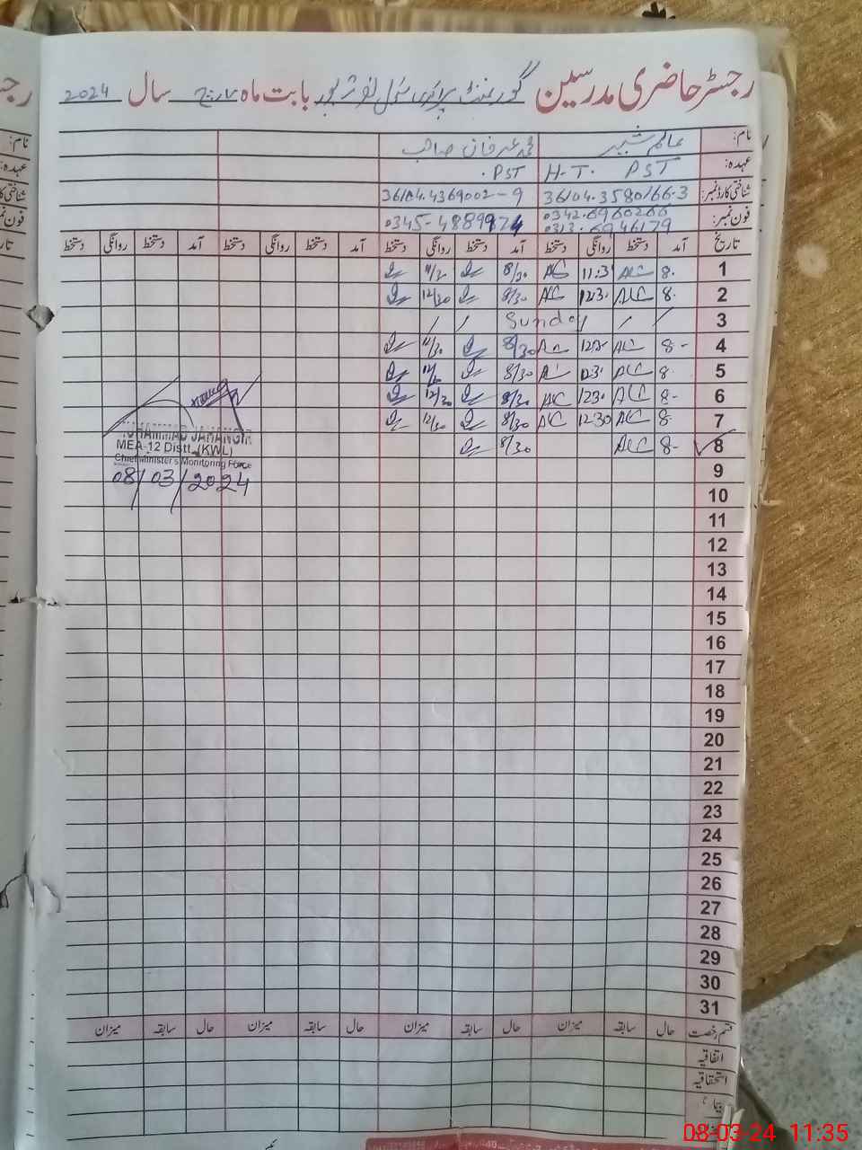 | Name: AL**** SH**** Designation: (School Headmaster's/Headmistress's) PST Phone/Cell Number: 03**** |