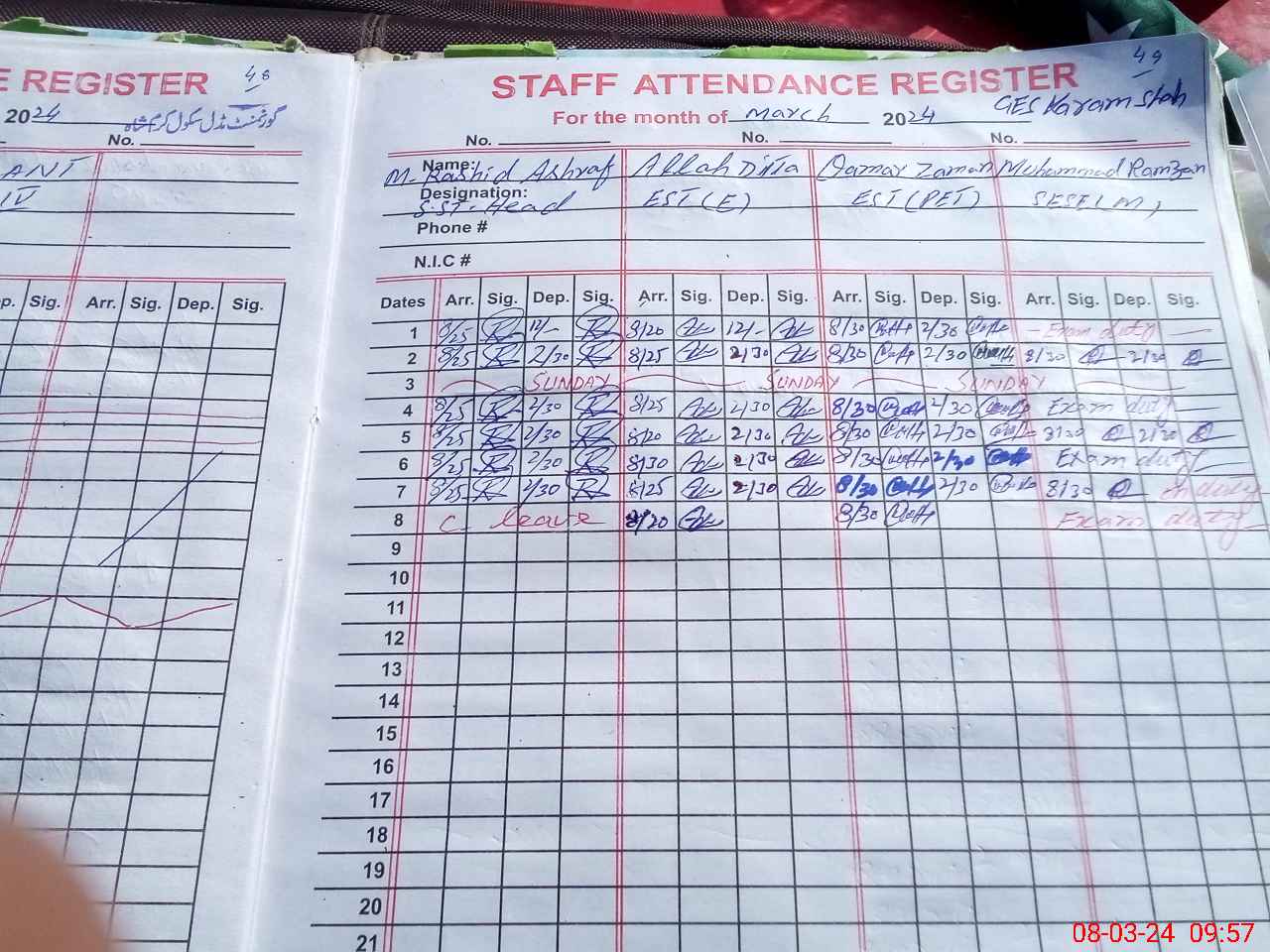 | 36**** | Mu**** Ra**** | 4 | 2 | 0 | 0 | 0 | 0 | 0 | 0 | 0 | 0 | 0 | Exam Duty |