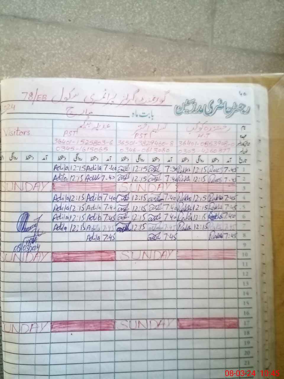| Name: RA**** KO**** Designation: (School Headmaster's/Headmistress's) PST Phone/Cell Number: 03**** |