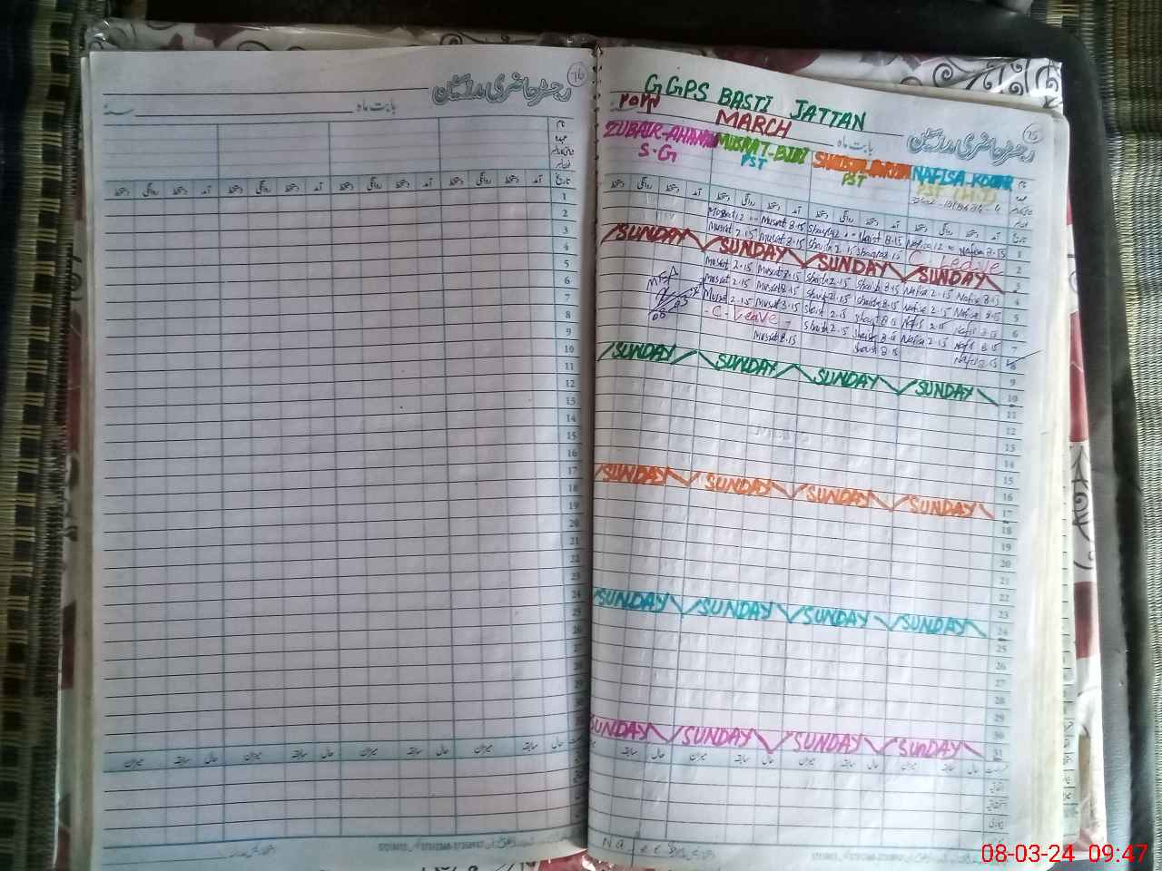 | CNIC | Full Name | Designation | R/C | Absence During Last Calender Month |