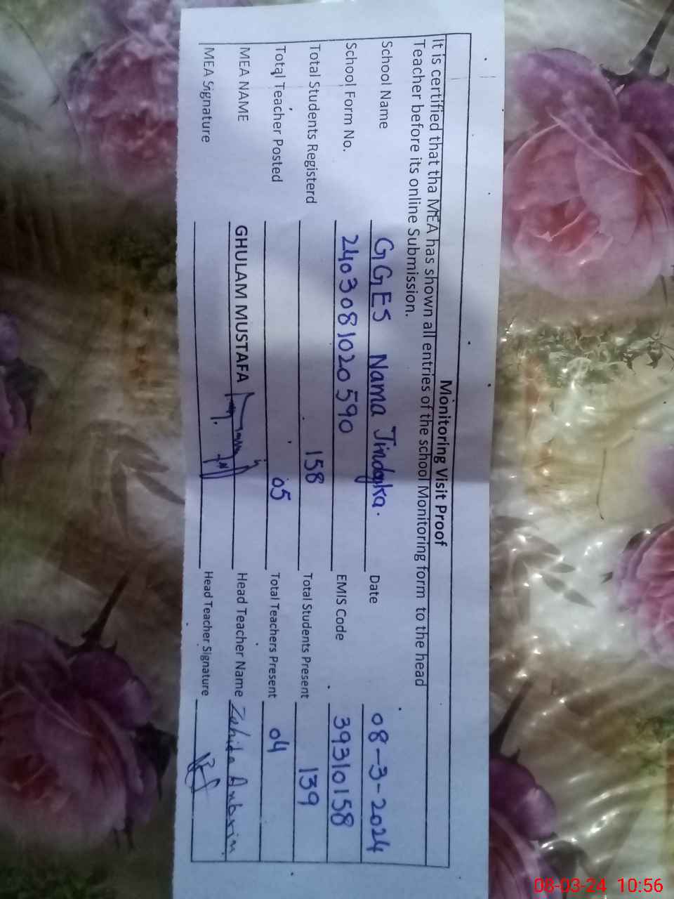 | EMIS Code: 39310158 | Name of School: GGES NAMA JINDAY KA | |||