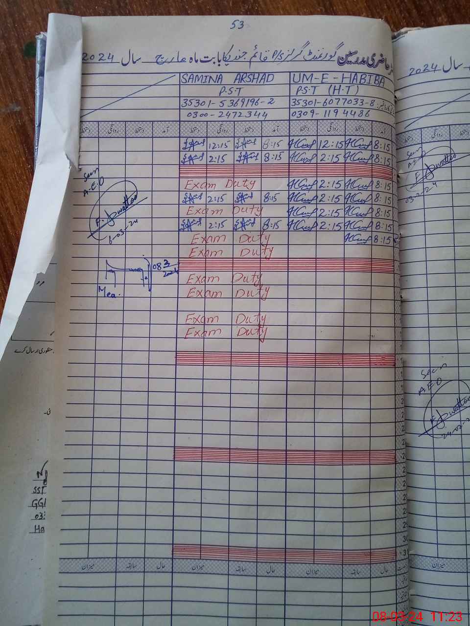 | 35**** | Sa**** Ar**** | PST | Regular | 0 | 3 | 0 | 0 | 0 | 0 | 0 | 0 | 0 | Exam Duty |