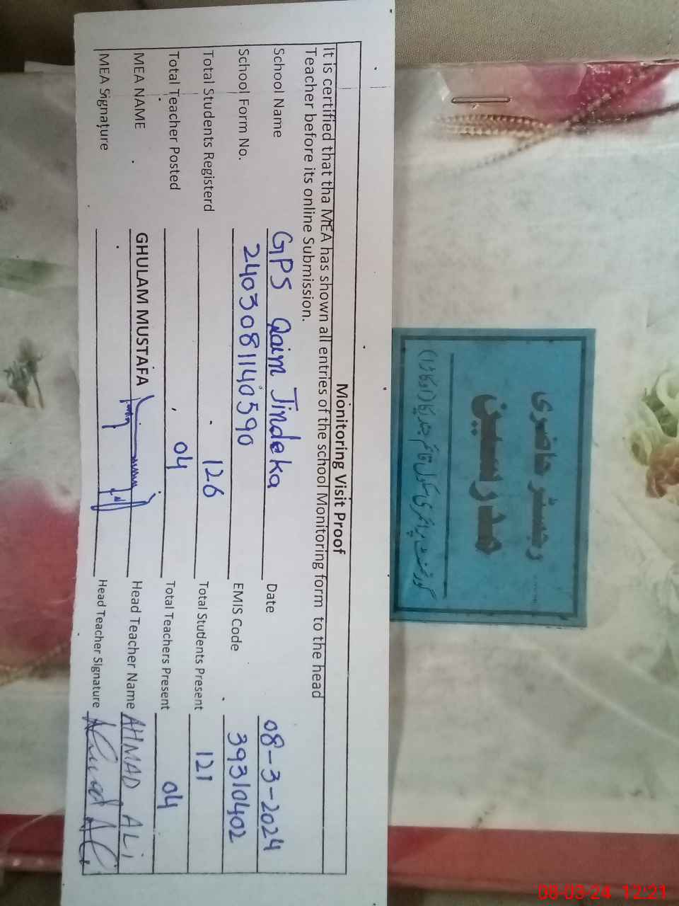 | EMIS Code: 39310402 | Name of School: GPS QAIM JINDE KA | |||