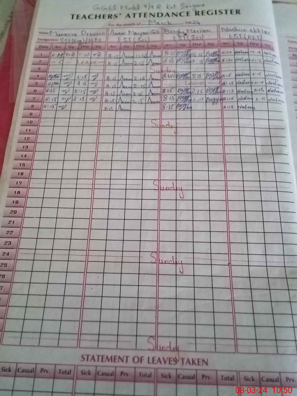 | Leave | Duty | Absent | Maternity | Medical | Ex- Pak |