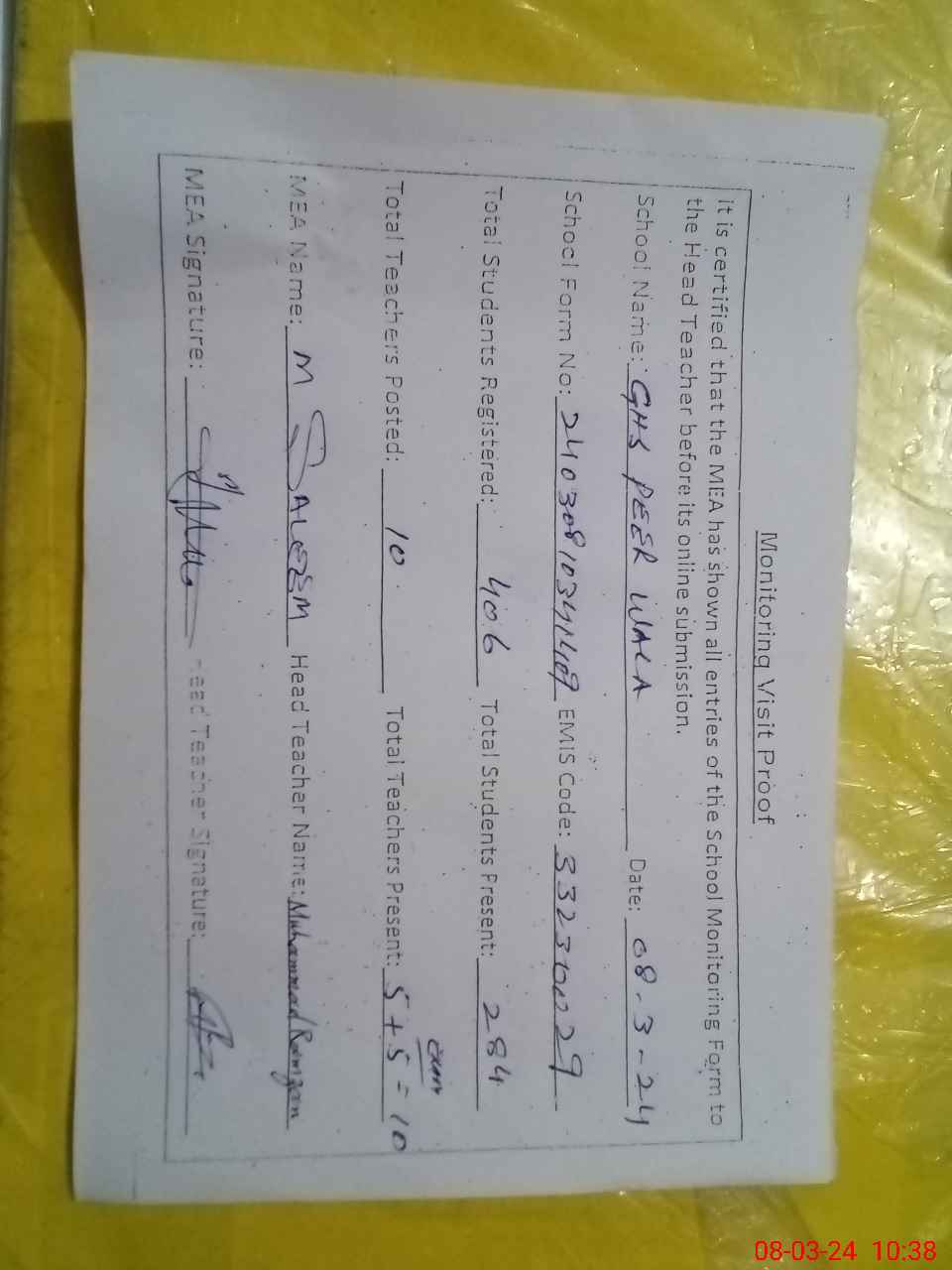 | EMIS Code: 33230029 | Name of School: GHS PIR WALA | |||