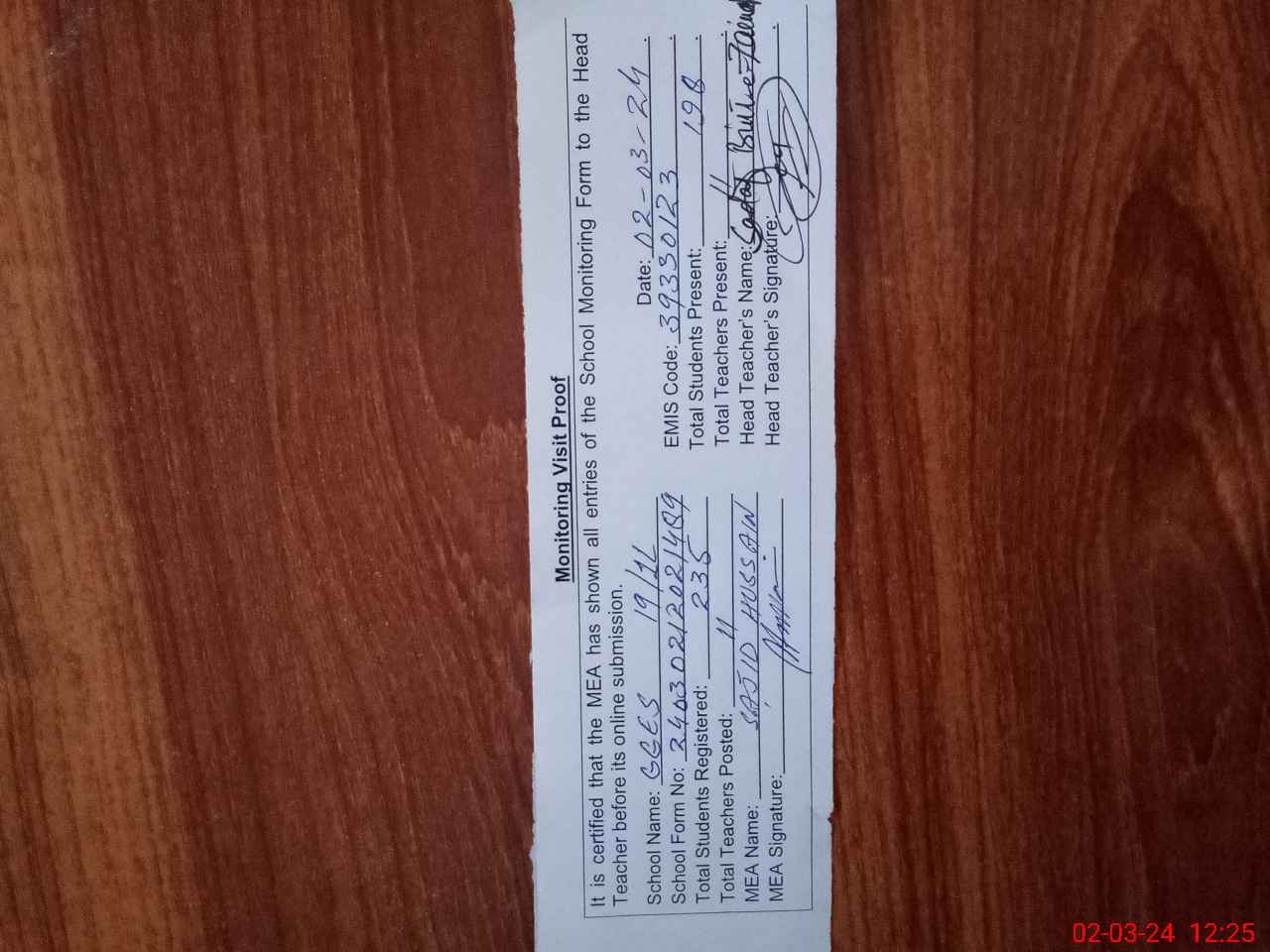 | Certified that this School was Inspected by the Undersigned MEA/DMO Today and the Information Stated Above is as Per Record. | |||||