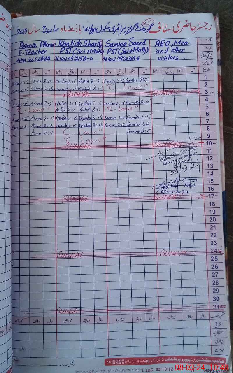 | Name: KH**** SH**** Designation: (School Headmaster's/Headmistress's) PST Phone/Cell Number: 03**** |