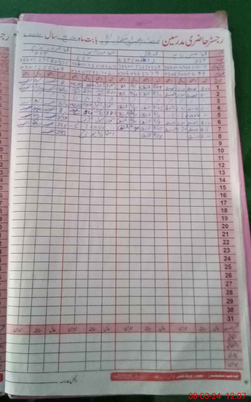 | 36**** | Mu**** An**** Za**** | S.S.T.(GENERAL) | Temporary | 1 | 0 | 0 | 0 | 0 | 0 | 0 | 0 | 1 | Present |