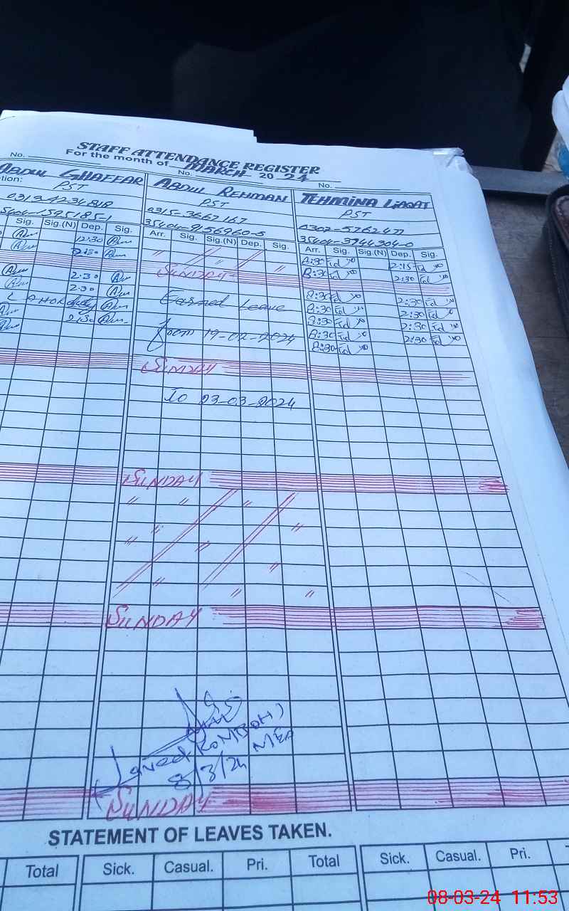 | 35**** | Da**** Su**** | PST | Regular | 0 | 0 | 0 | 0 | 0 | 0 | 0 | 0 | 0 | Exam Duty |