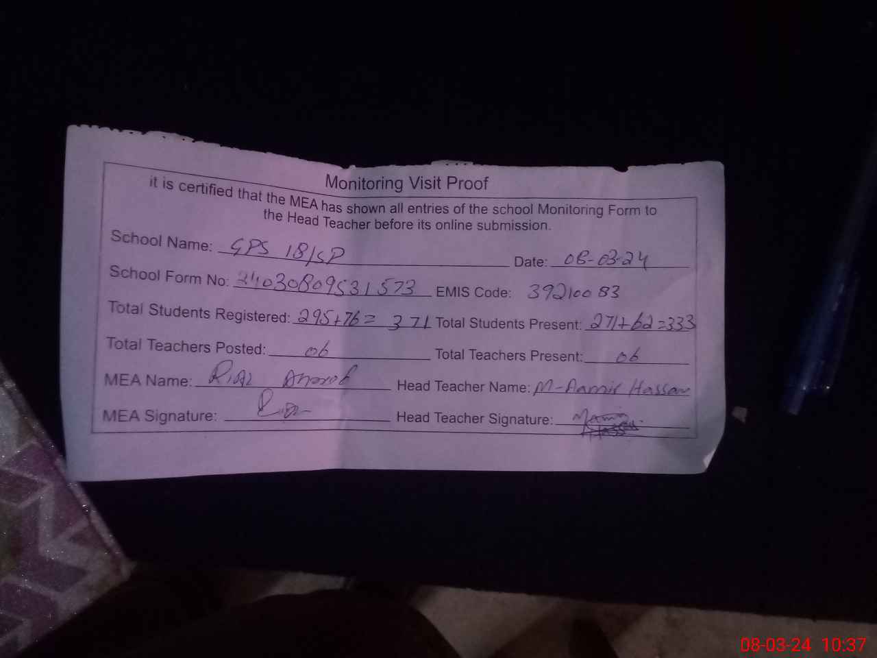 | EMIS Code: 39210083 | Name of School: GPS 18-SP P/O 17/S.P PAKPATTAN | |||