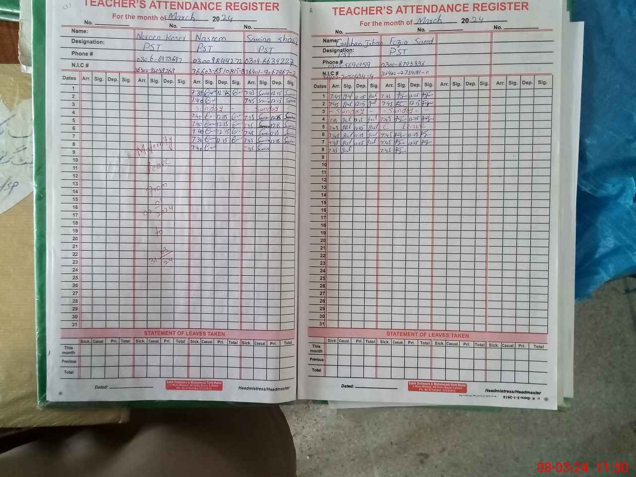 | Name: NO**** KO**** Designation: (School Headmaster's/Headmistress's) PST Phone/Cell Number: 03**** |