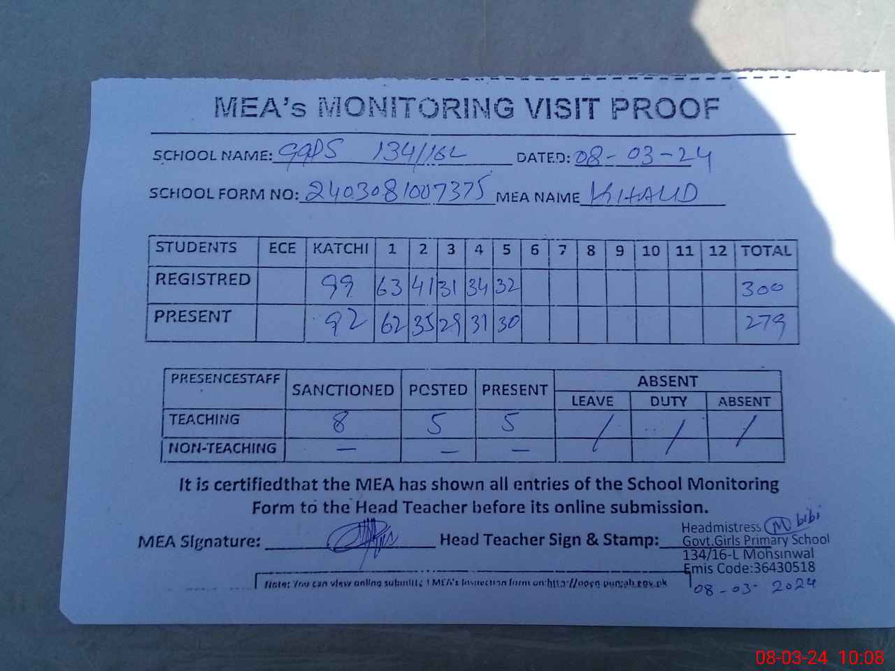 | EMIS Code: 36430518 | Name of School: GGPS CHAK NO. 134/16-L MOHSINWAL | |||