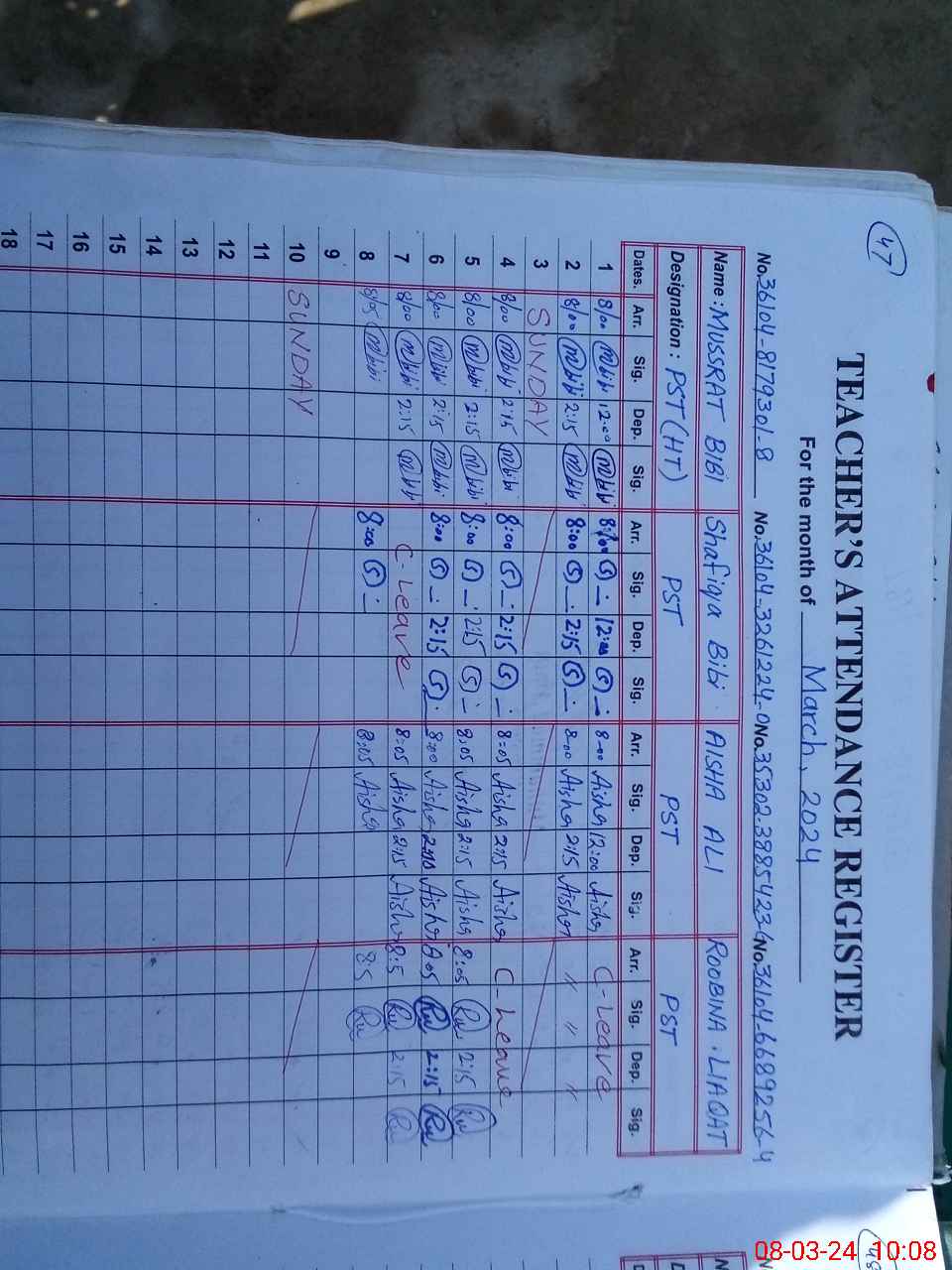 | Name: Mu**** Bi**** Designation: (School Headmaster's/Headmistress's) PST Phone/Cell Number: 03**** |