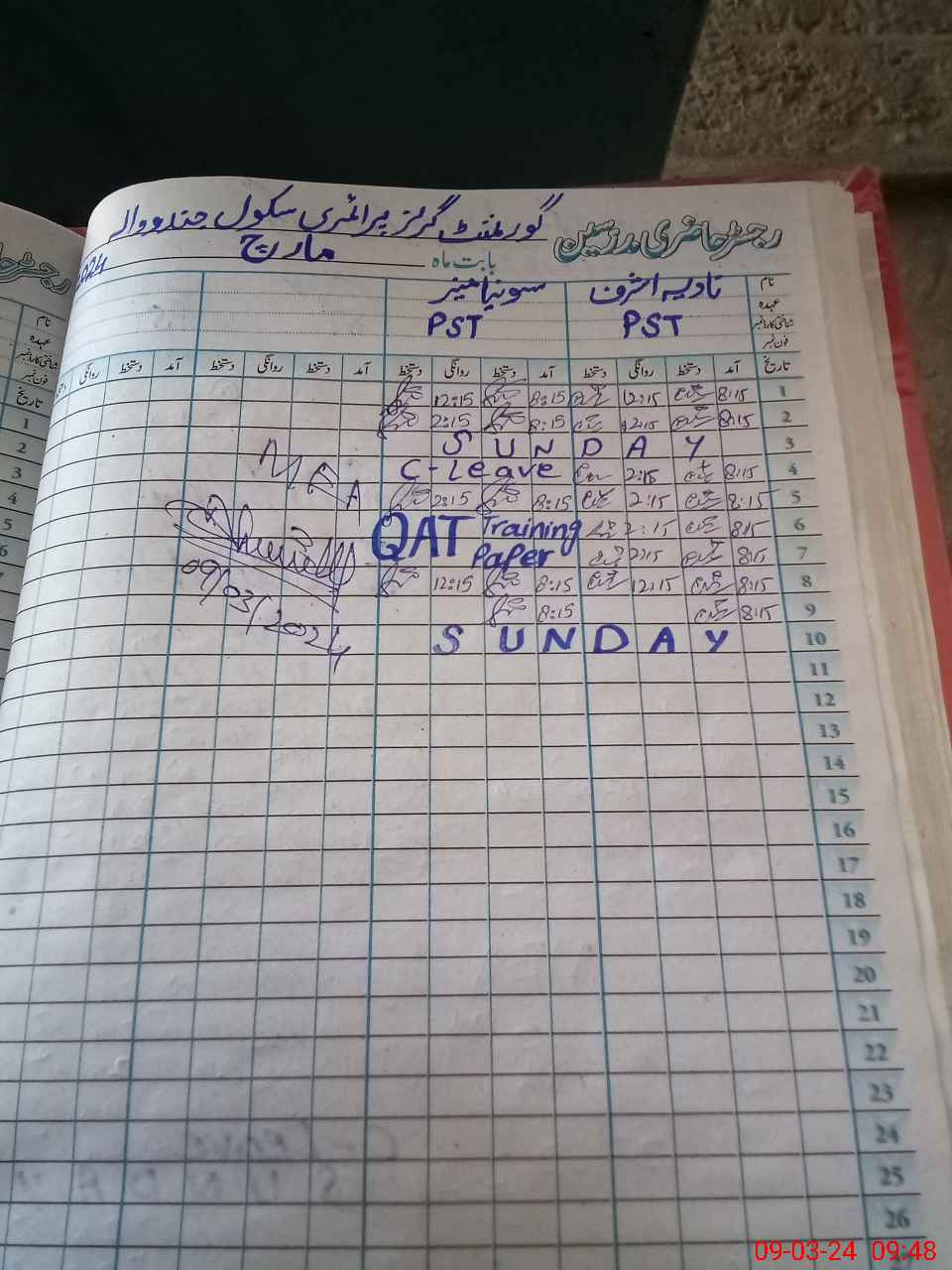 | Name: NA**** AS**** Designation: (School Headmaster's/Headmistress's) PST Phone/Cell Number: 03**** |