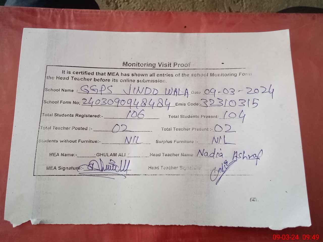 | EMIS Code: 32310315 | Name of School: GGPS JINDO WALA | |||