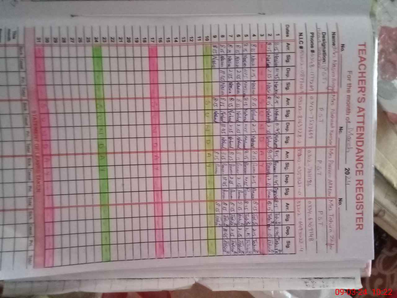 | Name: NA**** AN**** Designation: (School Headmaster's/Headmistress's) PST/ Phone/Cell Number: 03**** |