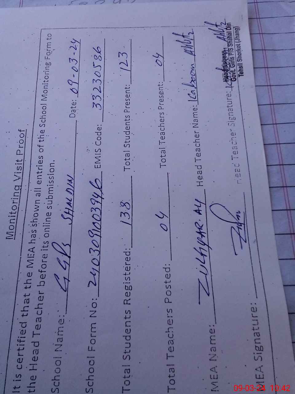 | EMIS Code: 33230586 | Name of School: GGPS SHAHAL DIN | |||
