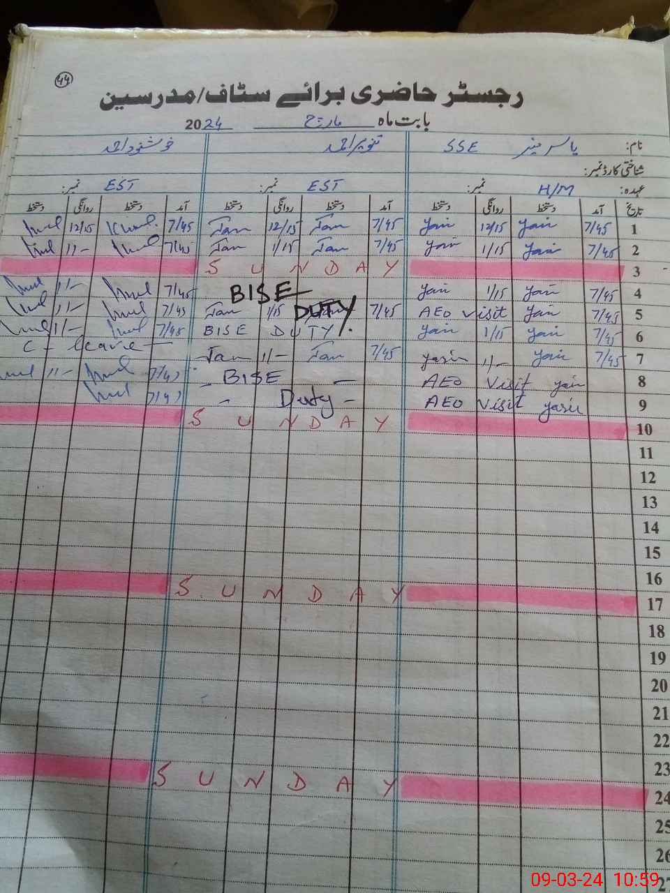 | 35**** | Ta**** Ah**** | EST | Regular | 0 | 0 | 0 | 0 | 0 | 0 | 0 | 0 | 0 | Exam Duty |