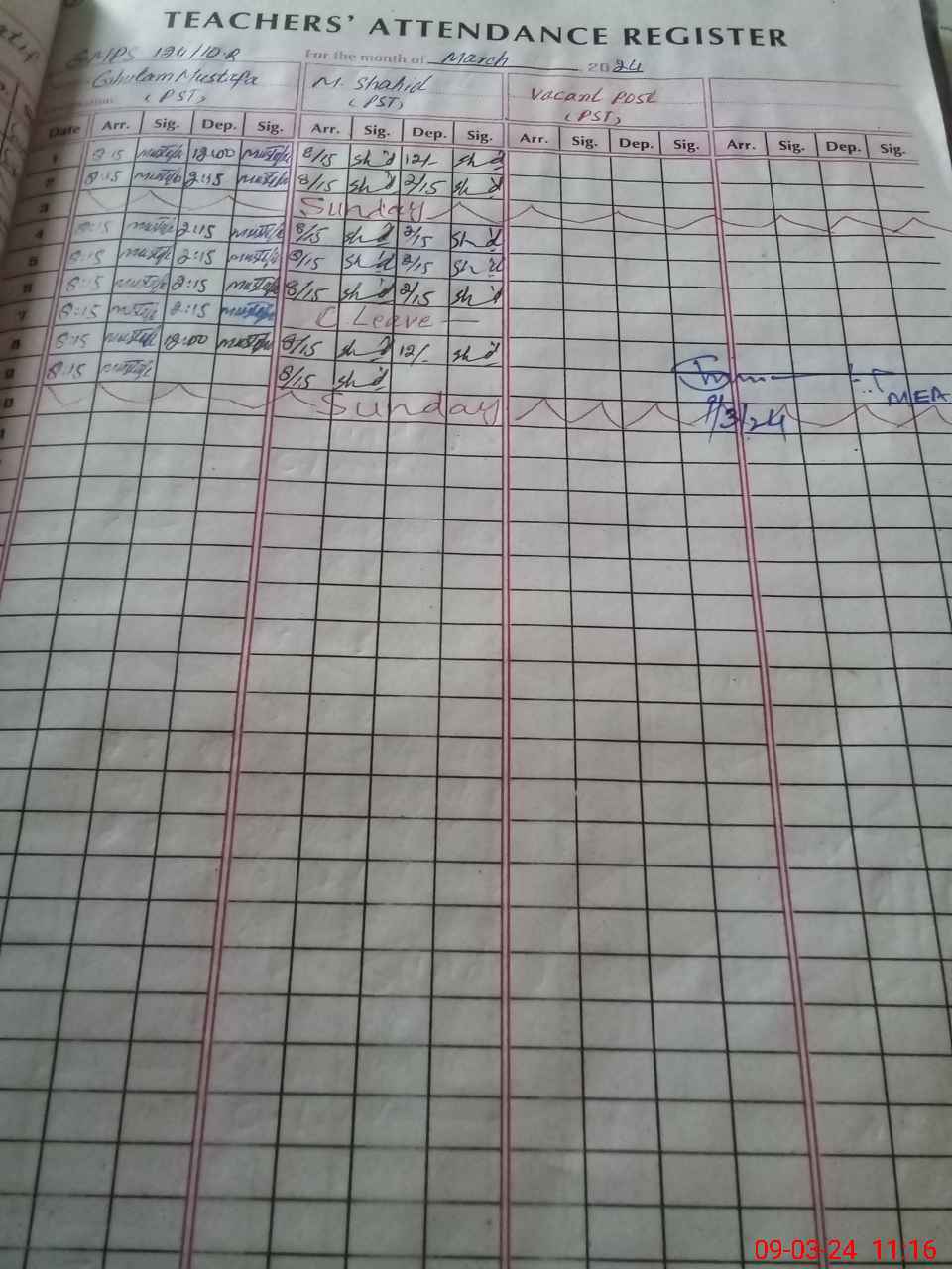 | Monitoring Date: 09-03-2024 | Start Time: 09-03-2024 09:59 AM | End Time: 09-03-2024 11:21 AM | Name of MEA: M.Is**** (S**** 03**** | |