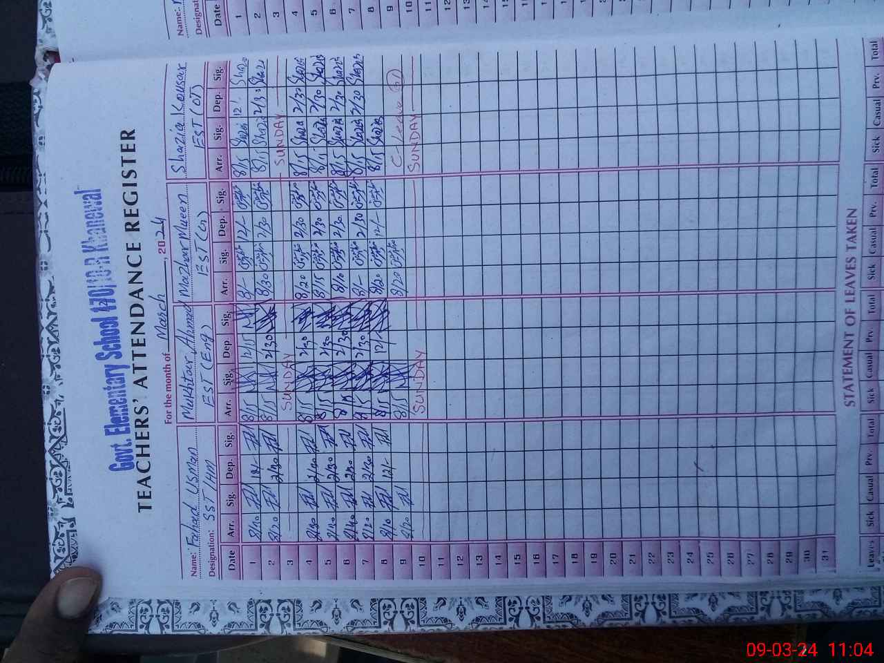| Leave | Duty | Absent | Maternity | Medical | Ex- Pak |