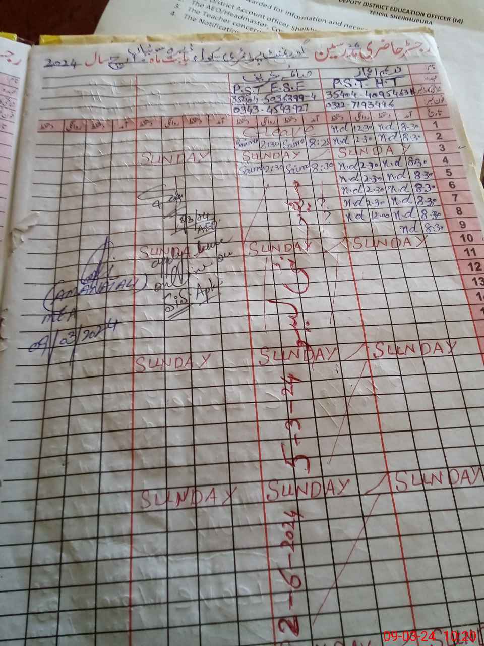 | Remarks (Use Separate Page if Required): ESE Saima Shareef went on leave with out approval of leave application on SIS from GPS Dera Soian EMIS code 35430295 So she marked an absent | |||||