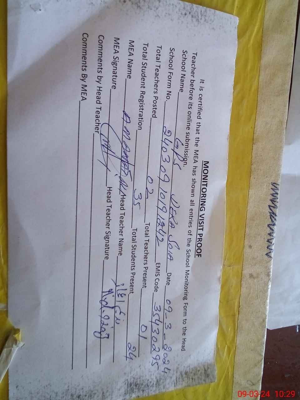 | EMIS Code: 35430295 | Name of School: GPS DERA SOIAN | |||