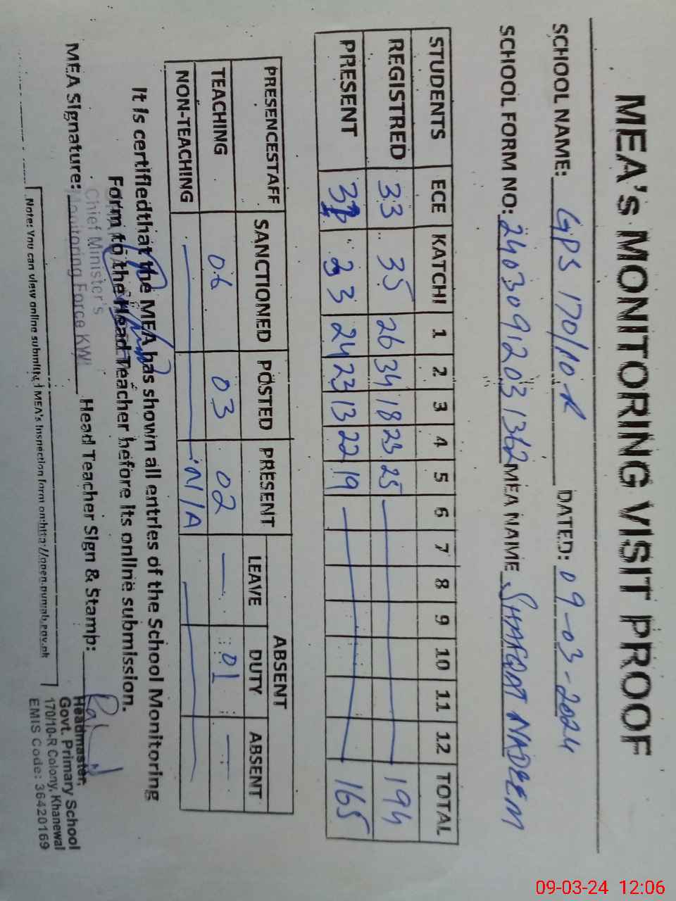| EMIS Code: 36420169 | Name of School: GPS 170/10-R, KHANEWAL | |||