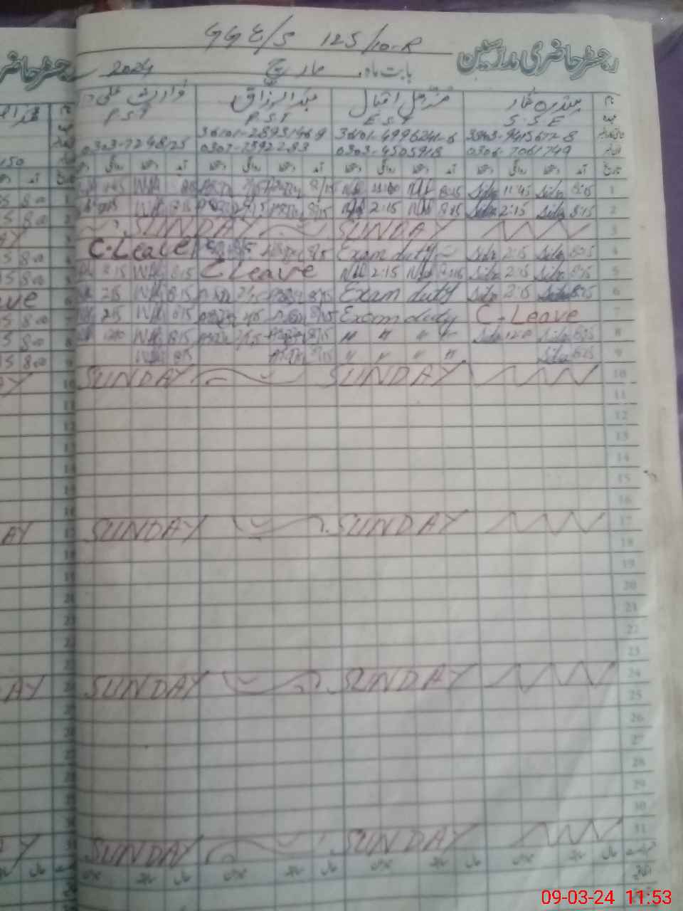 | 36**** | Mo**** Iq**** | 3 | 1 | 0 | 0 | 0 | 0 | 0 | 0 | 0 | 0 | 0 | Exam Duty |
