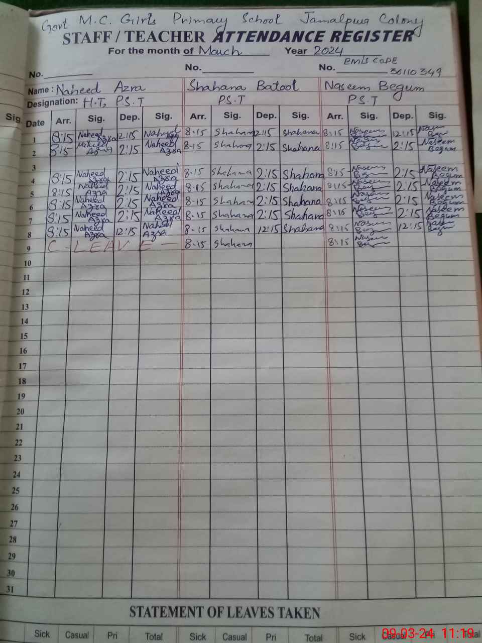 | 36**** | Na**** Az**** | PST | Regular | 0 | 0 | 0 | 0 | 0 | 0 | 0 | 0 | 0 | Casual |