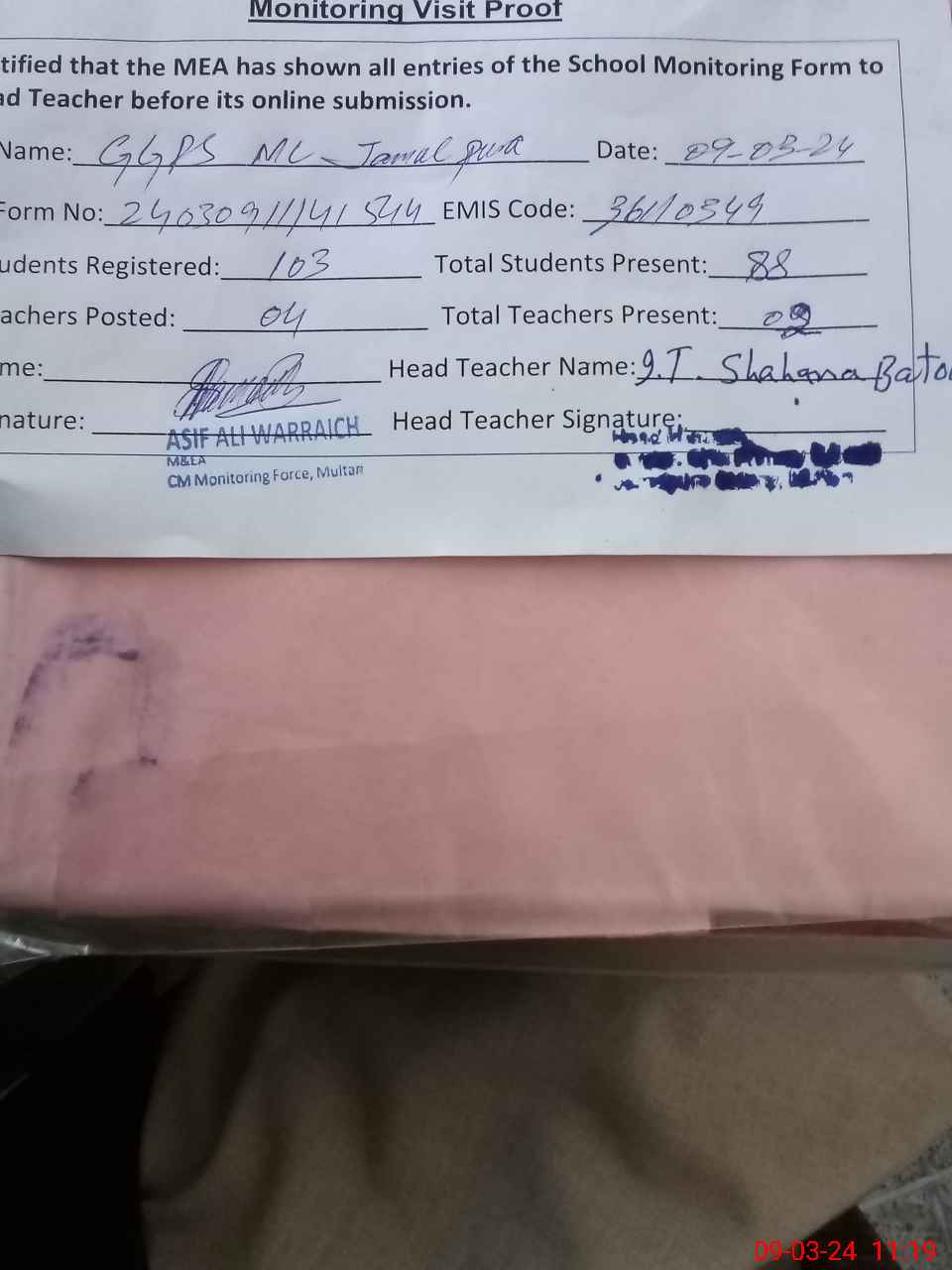| EMIS Code: 36110349 | Name of School: GGPS MC JAMAL PURA | |||