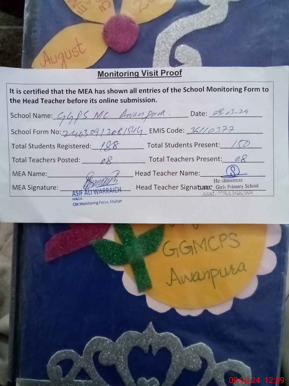 | EMIS Code: 36110377 | Name of School: GGPS MC AWAN PURA | |||
