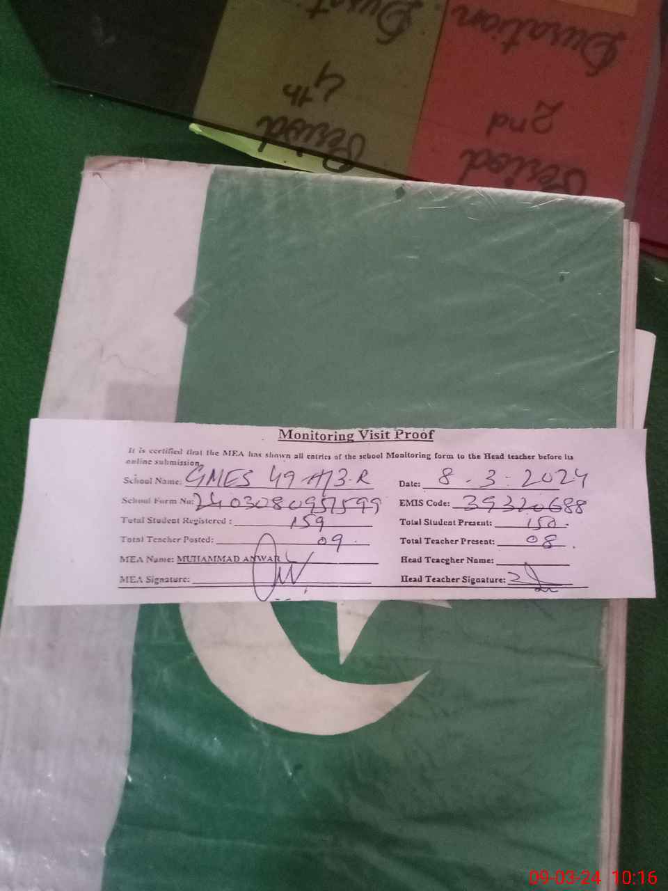 | Attendance Register | Head Teacher | MEA with School | Visit Proof |
