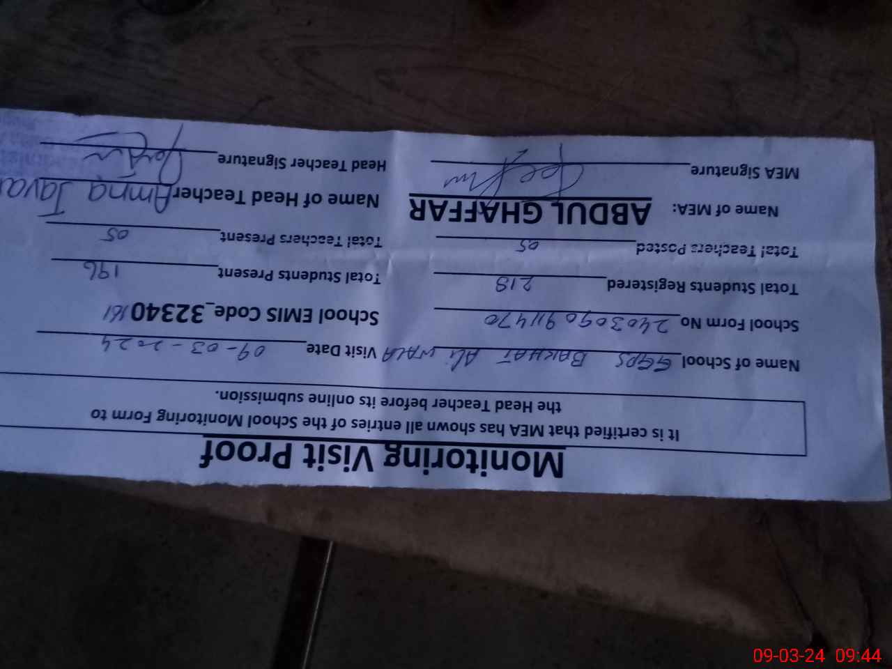 | EMIS Code: 32340161 | Name of School: GGPS BAKHAT ALI WALA | |||