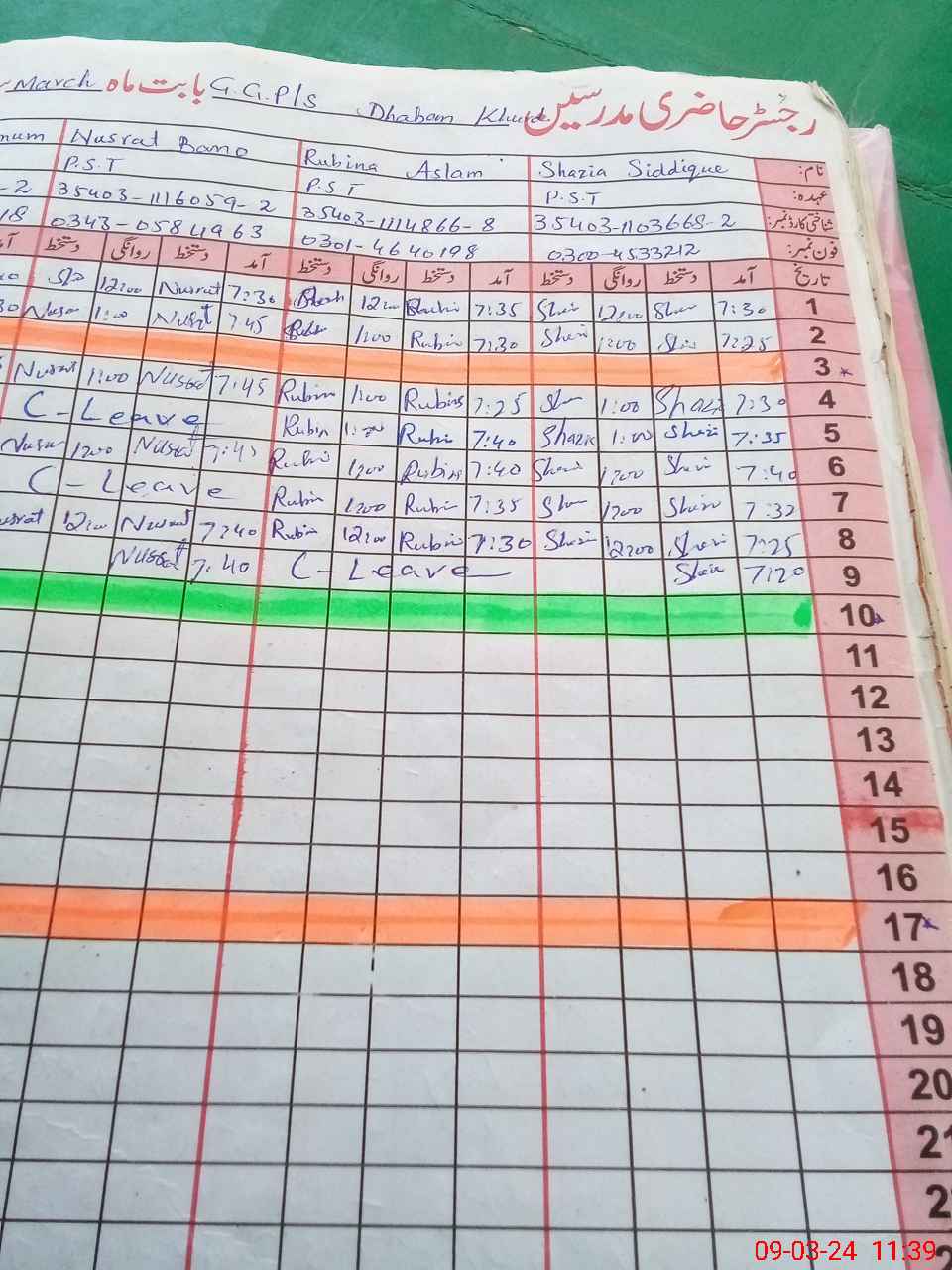 | CNIC | Full Name | Designation | R/C | Absence During Last Calender Month |