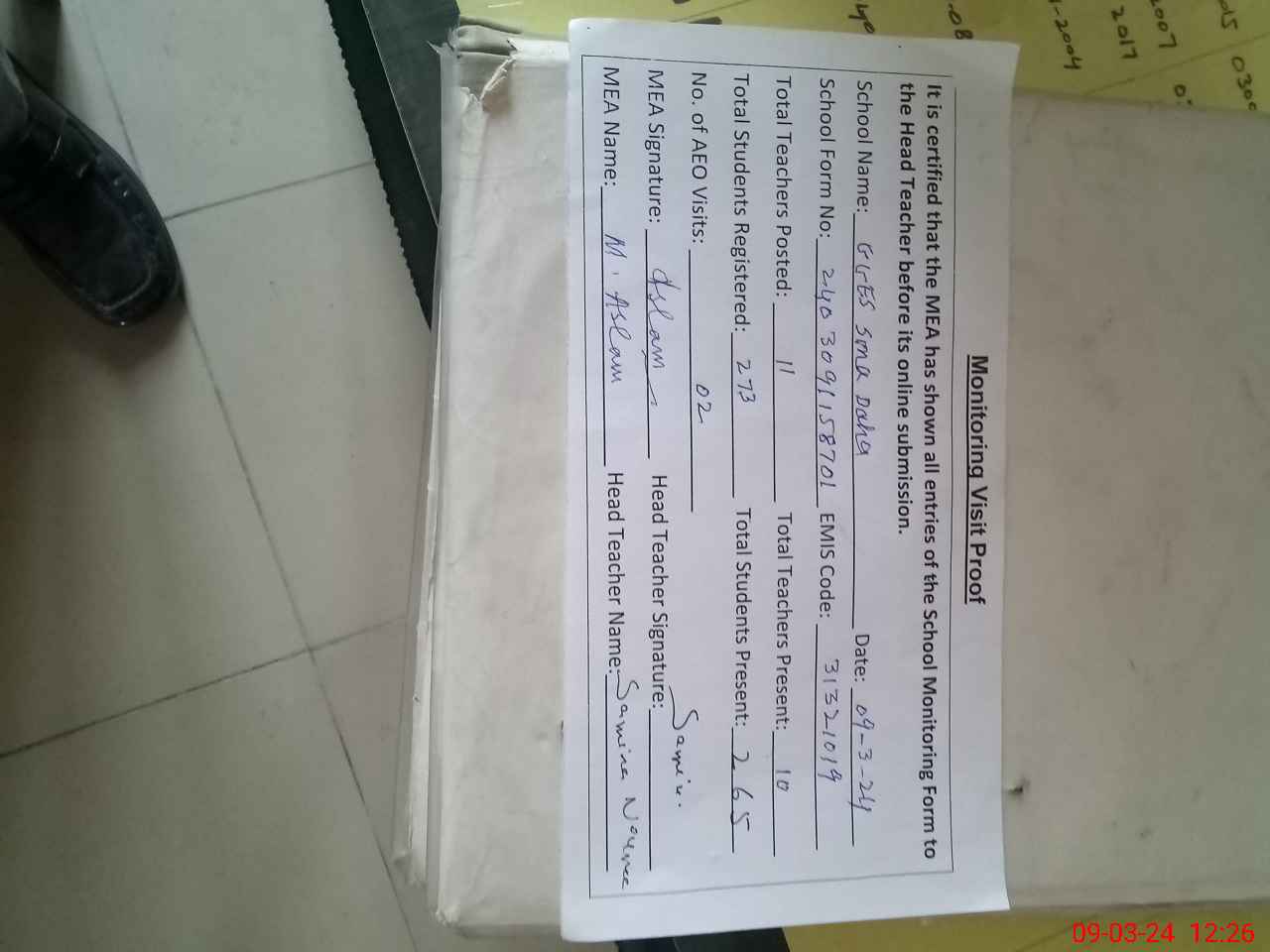 | Certified that this School was Inspected by the Undersigned MEA/DMO Today and the Information Stated Above is as Per Record. | |||||