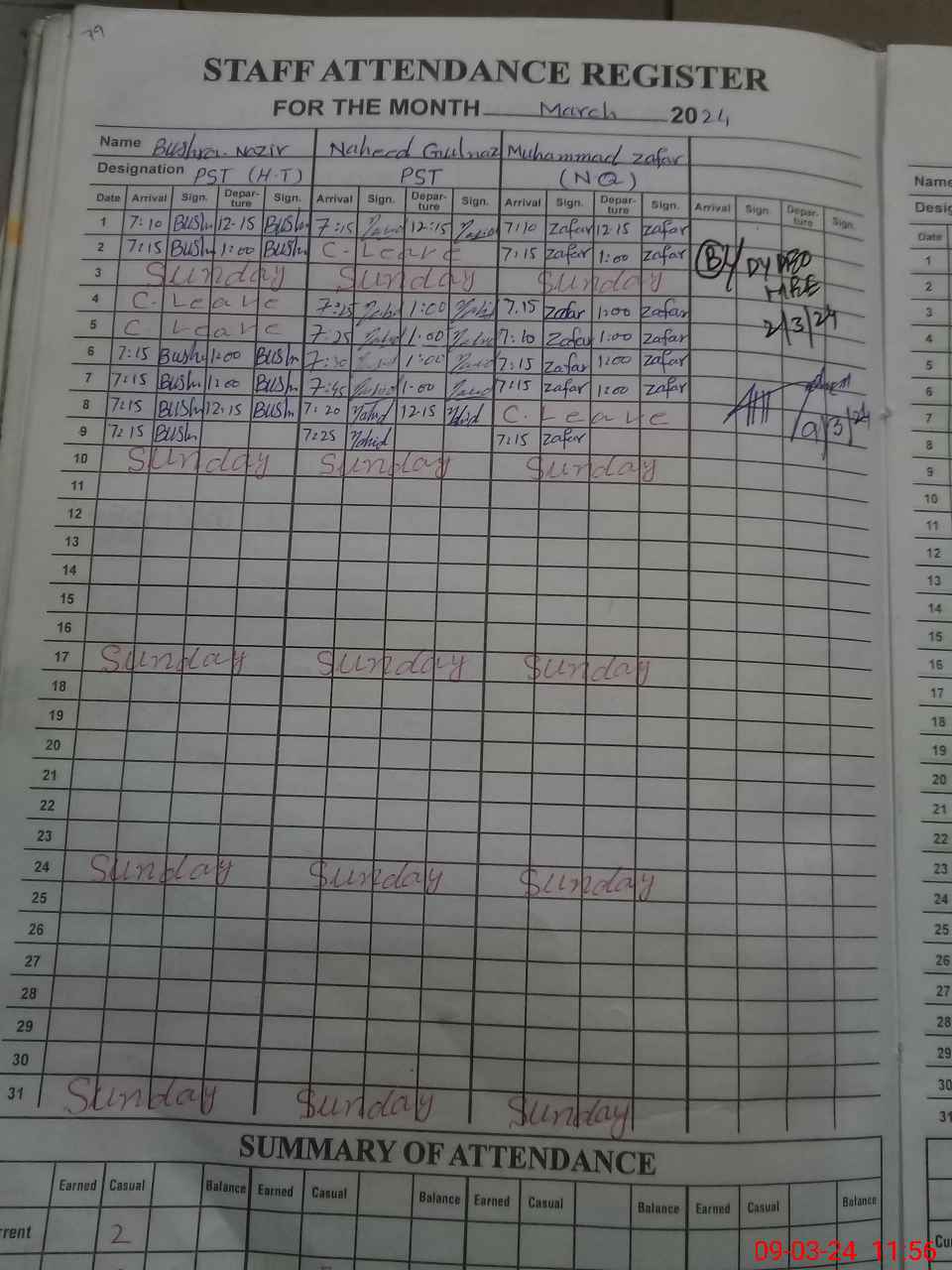 | CNIC | Full Name | Designation | R/C | Absence During Last Calender Month |