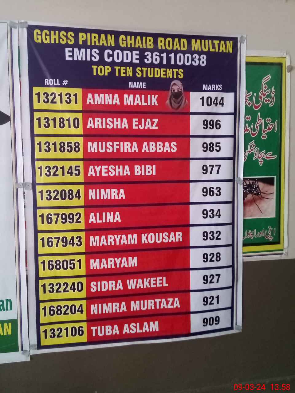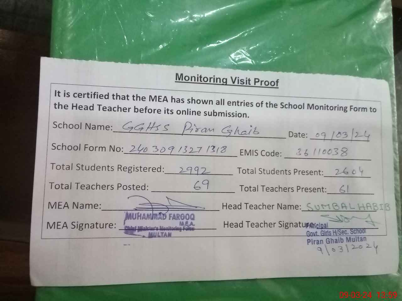 | EMIS Code: 36110038 | Name of School: GGHSS PIRAN GHAIB MULTAN | |||