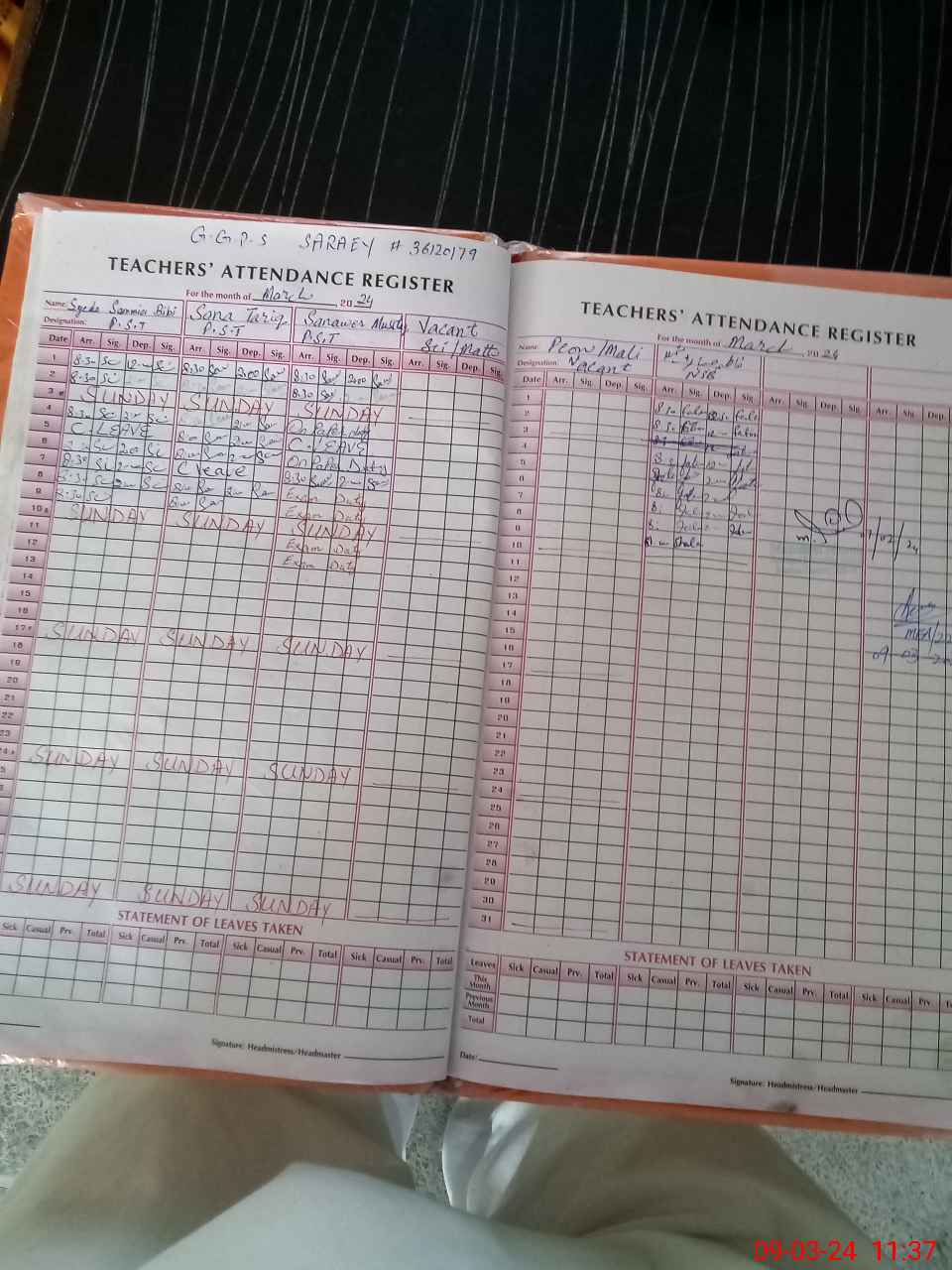 | Name: Sa**** Ta**** Designation: (School Headmaster's/Headmistress's) PST Phone/Cell Number: 03**** |