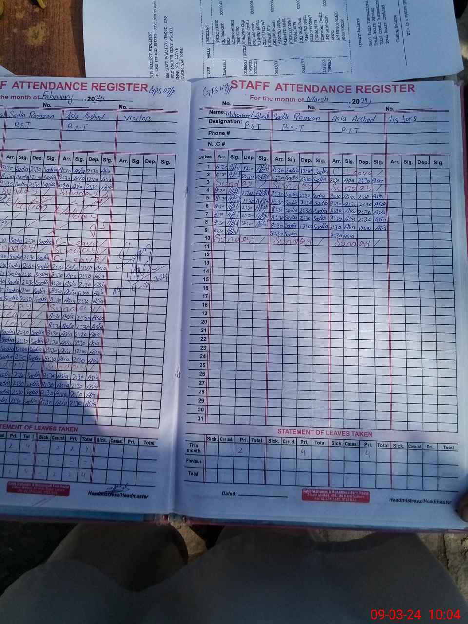 | Name: M.AF**** Designation: (School Headmaster's/Headmistress's) PST Phone/Cell Number: 03**** |