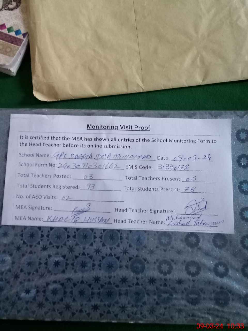 | EMIS Code: 31330178 | Name of School: GPS DAGGA DUR MUHAMMAD | |||