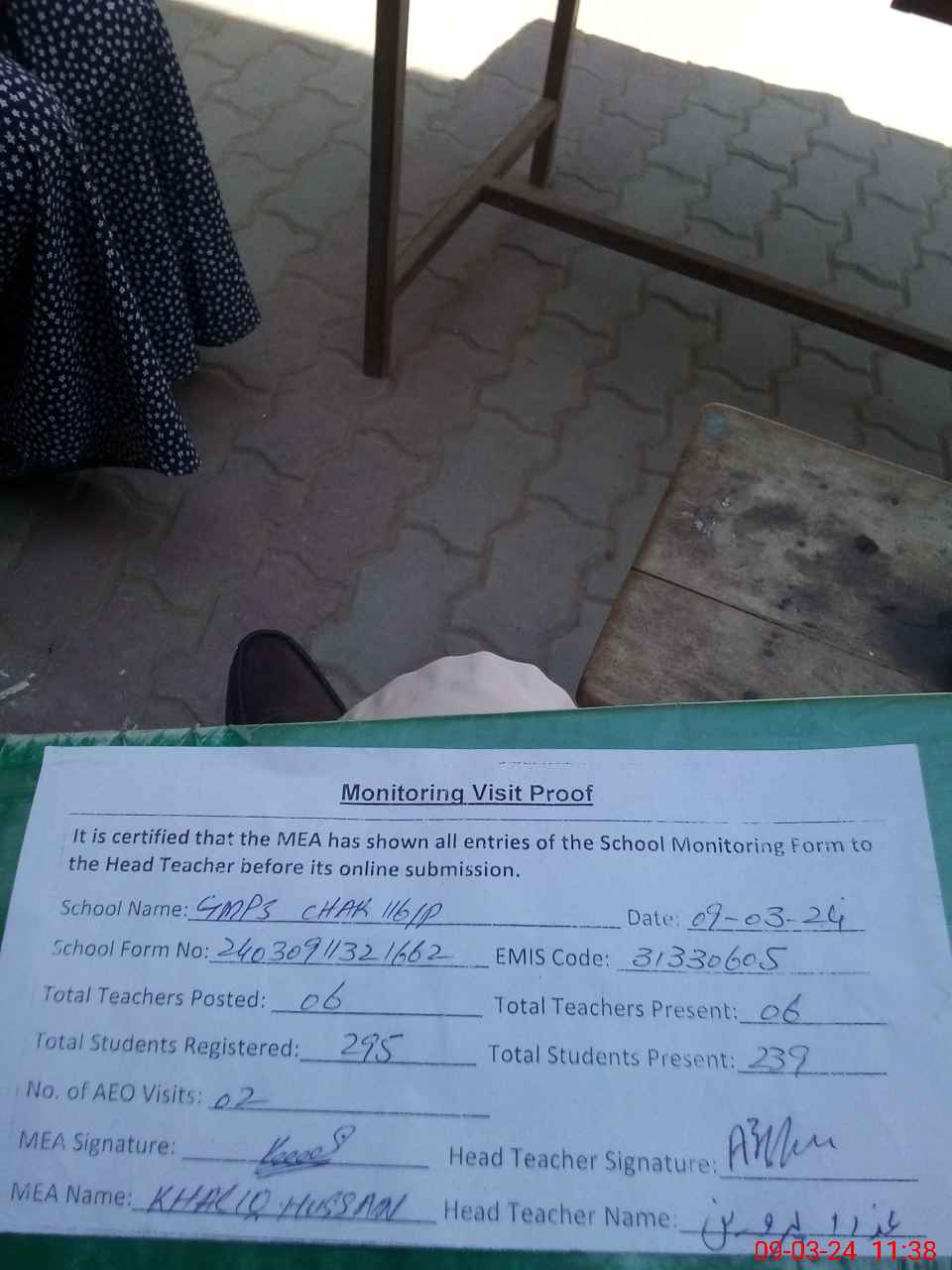 | EMIS Code: 31330605 | Name of School: GMPS CHAK NO. 116/P | |||