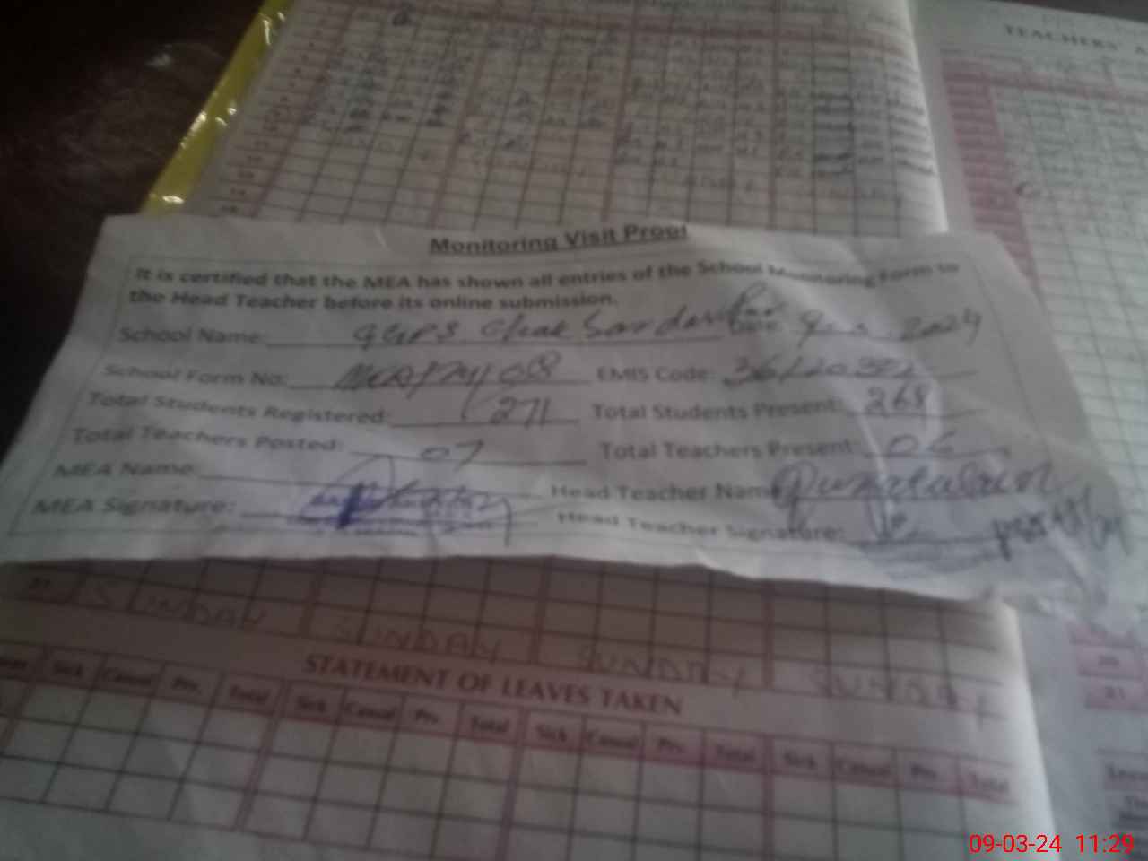 | EMIS Code: 36120302 | Name of School: GGPS CHAK SARDAR PUR TEH. SHUJABAD | |||